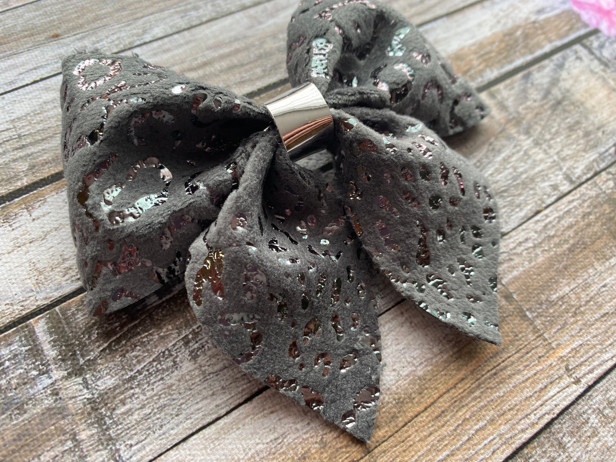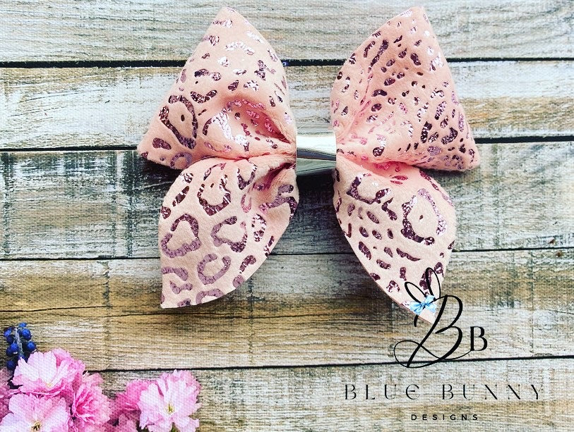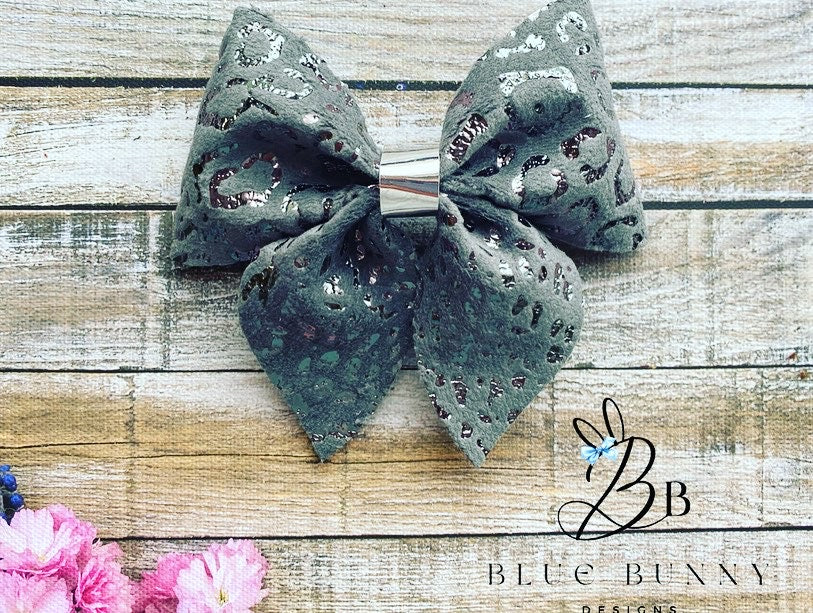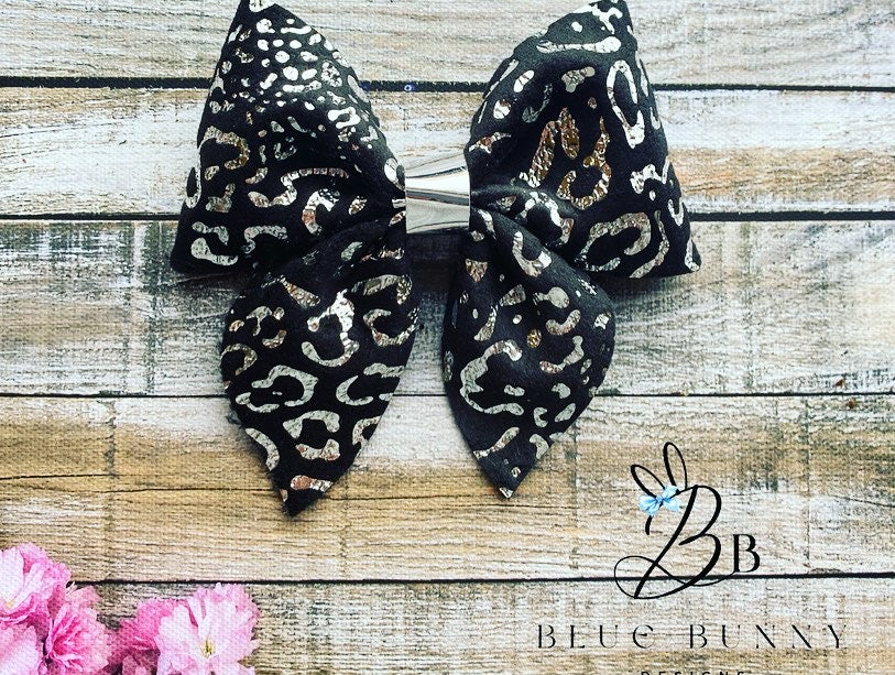 Beautiful velvet leopard print bows with metallic print. Available in a variety of colours.